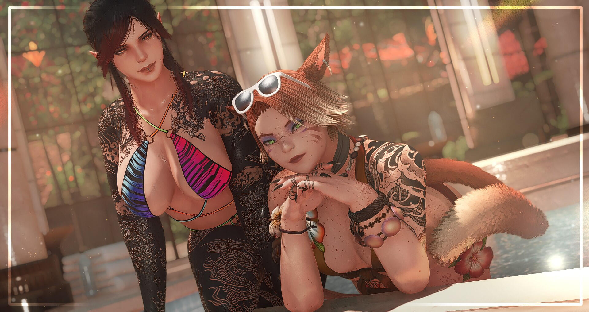Kugane : The Red Lantern District:Despite no longer having a business in the infamous district, she still has a myriad of friends and colleagues who not only reside in it, but work within its walls. she is frequently seen at a strange medicine shop, cavorting with an elezen gentleman.Her name tends to have various reactions, some in respect, others out of fear or wariness. Sharlayan : The Studium:In the very early days of Evelia's newfound freedom, Eliceyn hid their relationship, claiming to be an assistant. Once Eliceyn was no longer a danger to herself, her own mother revealed the true nature of their relationship.Because of their unique heritage, Eliceyn willingly subjects herself to be a "research specimen" for those born with void-tainted aether in hopes of understanding their condition. The Rookery : "The Hideout":Eliceyn's own bar and establishment; a small bar hidden in a corner of The Lavender Beds, when she is not seen at her usual hauntings, she is often there either hiding in her offices, or slinging drinks to the thirsty patrons who occupy its doors.Her venue is oftentimes seen as a 'safe haven' for those who come from unusal backgrounds, or those much like its unusual owner.This venue has closed its doors to the public permanently in-game, but still remains open for the sake of story. The Royal Chambers : "Den Of Desires":A risque venue meant for those with heavier desires to be fulfilled in the sheets, Eliceyn works there to capture guests and staff in their best forms (when not working in the back rooms). She rarely speaks to other patrons, but is always willing to take your photo upon request.