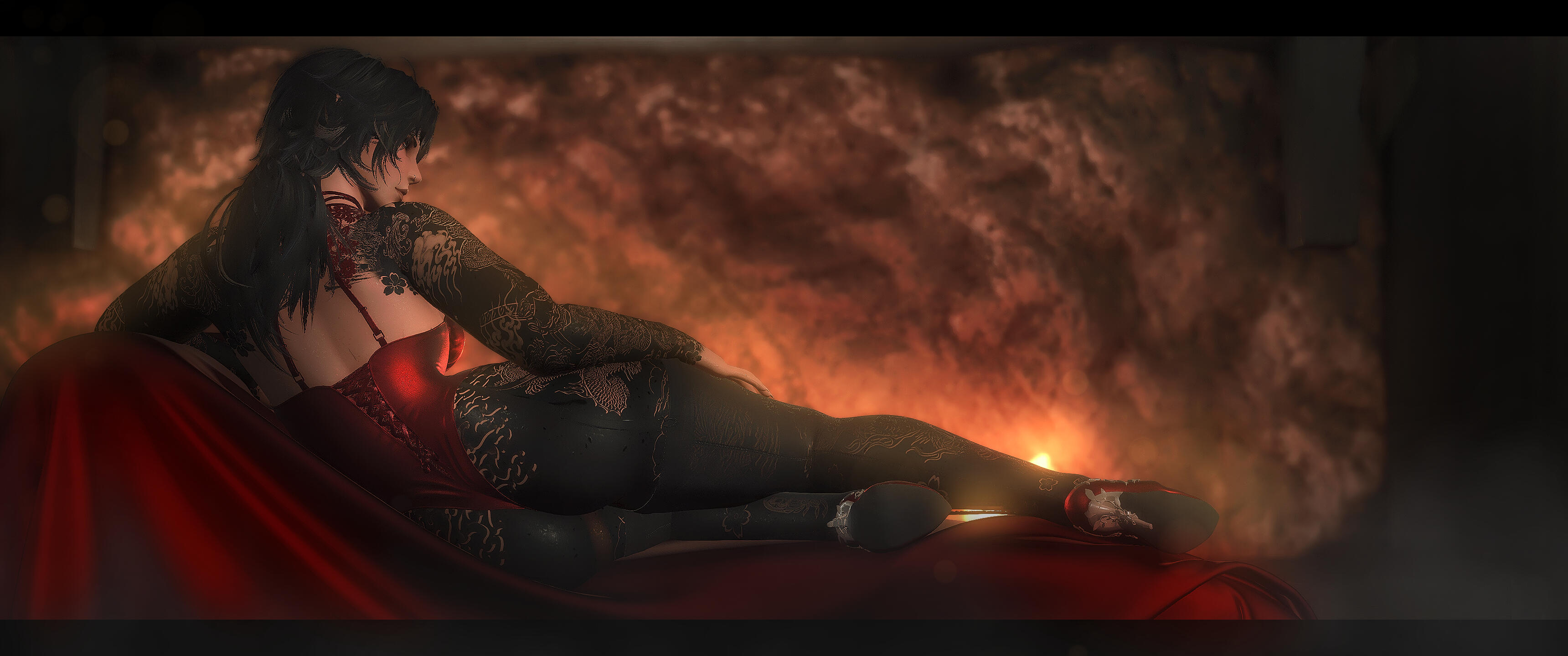 Not much is known about Eliceyn (or rather who she is, truly) save what her partners and the few friends she has know (and are unwilling to say). Publicly across Eorzea, she is simply known to be a common merchant who occasionally moonlights as a bartender, with a history of selling her body to wealthy patrons for coin.In Ishgarde, she was once known as a secret companion to a few noble lords and ladies stuck in loveless marriages, rumored to be the bastard of a defrauding noble lord's wife.In Sharlayan and Radz-at-Han, to the reseachers and alchemist, she is a valuable asset to their research. There are also rumors circulating around Sharlayan that she is the child of a prominent member of the Forum.In the Red Lantern District of Kugane, she was once a prolific bawdy house owner, 'spinning straw into gold' with those who had nowhere to go, and a desire to survive, even if it meant selling their bodies.A 'fair and firm' madam, she tolerated no disrespect to her or her custom. What made it all tumble down were rumors of her carrying out brutal killings, rumors made more believable when she was arrested for said murders (only released for lack of witnesses and evidence). Those who remember regard her either with respect, or fear.These days, she is frequently spotted between the main city hubs, oftentimes with one of her partners.